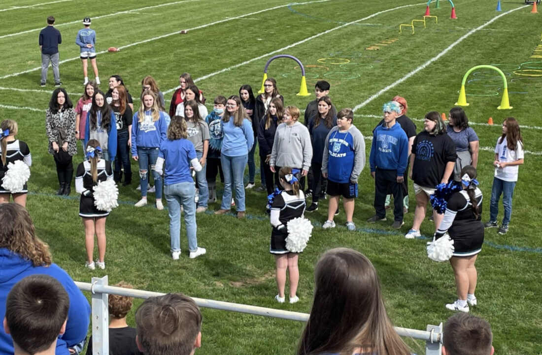 Students from the chorus sang the Star Spangled Banner, led by Mrs. Teresa Poole. Then the fall student athlete teams were introduced by 8th grader emcees Jordan Heggenstaller and Lewis Montgomery.