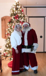 Santa and Mrs. Claus are pictured at the Wingate Faith Church just before the tree lighting ceremony earlier this month. Santa has been busy checking his naughty and nice lists and making sure the reindeer are practicing their take-offs and landings. Mrs. Claus has been busy making cookies for the elves. Santa and Mrs. Claus, aka Butch and Thelma Gilbert, enjoy bringing joy to children at Christmastime and sharing the message of Christ’s birth. This Santa and Mrs. Claus have been married 50 years. When not at the North Pole, they reside in the Marsh Creek area.