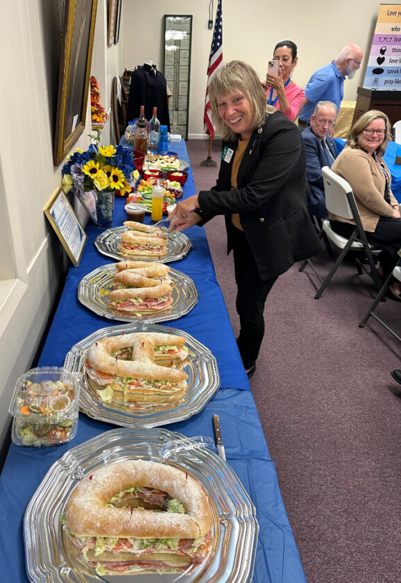 PHOTO PROVIDED Rotary District Governor Dawn Linn of Williamsport got a kick out of seeing her name spelled out in sandwiches when she made her official visit to the Lock Haven clubs on Sept. 30.