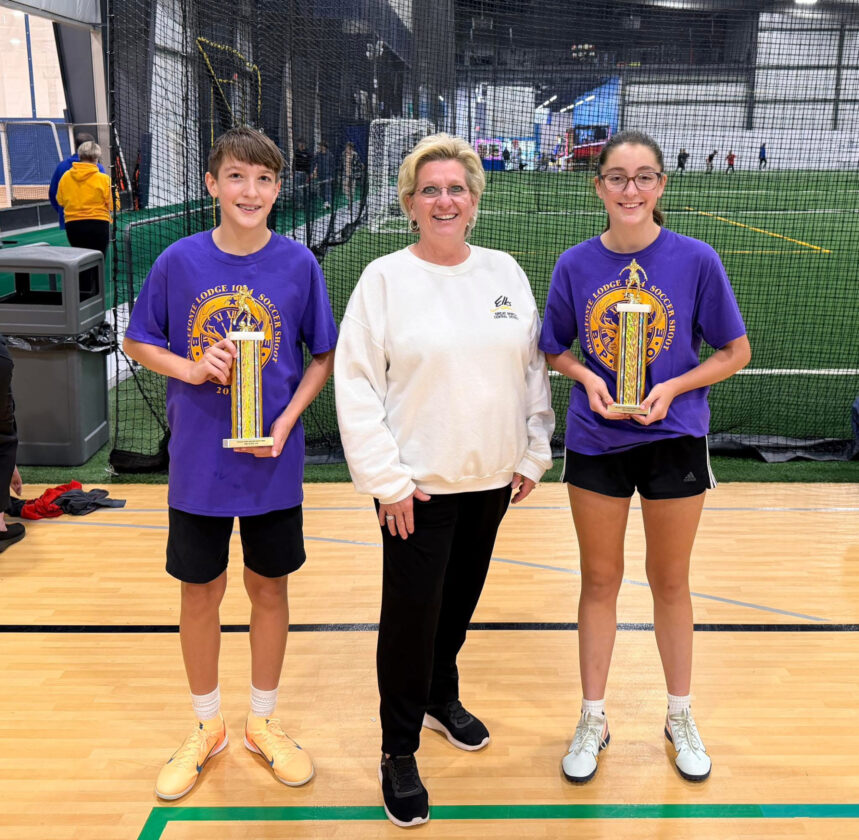 The Pennsylvania State Elks Soccer Shoot recently took place in State College, and the Bellefonte Elks Lodge #1094 is pleased to announce that two of their participants will be advancing to the Regional Soccer Shoot finals, to be held in March 2026, in York, Pa. Representing the Bellefonte Elks in the boys’ under age 14 division will be Austin Mauk and in the girl’s division, Izzy Oravis. Shown here are, from left, Mauk, Elks Northcentral District PDDGER Denise Zelznick and Oravis.