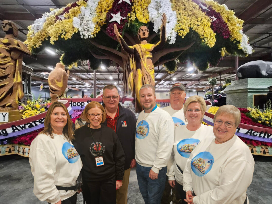 While most were focused on viewing the myriad football games taking place over the holidays, a group of local Elks, representing the North Central District of the Pennsylvania Elks, were busily preparing for the New Year’s Day Tournament of Roses Parade in a much different way than is usual and customary. A group of Elks from Bellefonte Lodge #1094, Philipsburg Lodge and Country Club #1173 and Huntingdon Lodge #976 traveled to Pasadena, Calif., to help put together the Elks Grand Lodge Float, and then view the parade from bleachers in front of the Pasadena Elks Lodge. Assisting with this effort were, from left, Bonnie McNelis, Elks Grand Lodge First Lady Susan Klatt, Elks GER Bryan Klatt, District Deputy Jonathan McNelis, Steve Zelznick, Past District Deputy Denise Zelznick and Past Exalted Ruler Nina King. Nicely done to all the Elks who helped with this effort.
