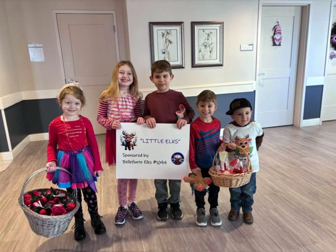 This past Valentines Day, the Bellefonte Elks Lodge #1094’s Little Elks visited Centre Care for the purpose of distributing red roses to the residence and Hershey Kisses to the staff members. Participating Little Elks included, from left, Isla Tucker, Cora Tucker, Kevin Buckley, Connor Buckley and Landyn Koch.