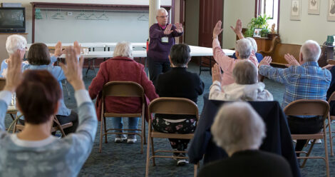 Covenant Cafe participants kept busy at its first April meeting through a variety of ways. The group enjoyed socializing and reminiscing on such things as their first car or first television and took part in seated Tai Chi, organized by volunteer Kitty Oechler. The group also enjoyed a review of photos from the 2025 session.
