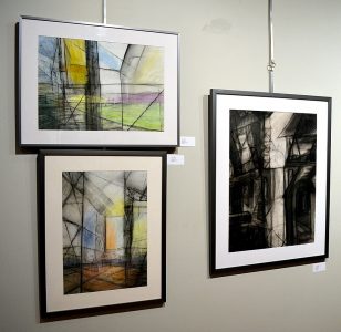 Raymond Heffner presented his abstract expressionistic works which he called his Windows series. These pastel and charcoal pieces are made to have a particular setting in time and location despite being architectural spaces. Heffner hopes to conjure a mood with his drawings with them serving as metaphors for human experience and the emotions associated with events in life. His process involves using marks, lines and colors to direct that energy at the viewer.