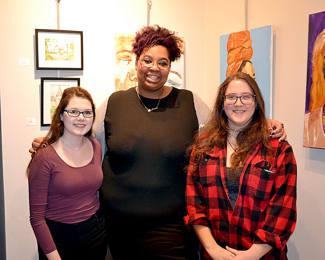 RICK KESSINGER/THE EXPRESS Members of Lock Haven University’s Fine Art Society, Alexis Hynd, Shatana Mone and recent LHU graduate Danielle Page were in attendance that evening.