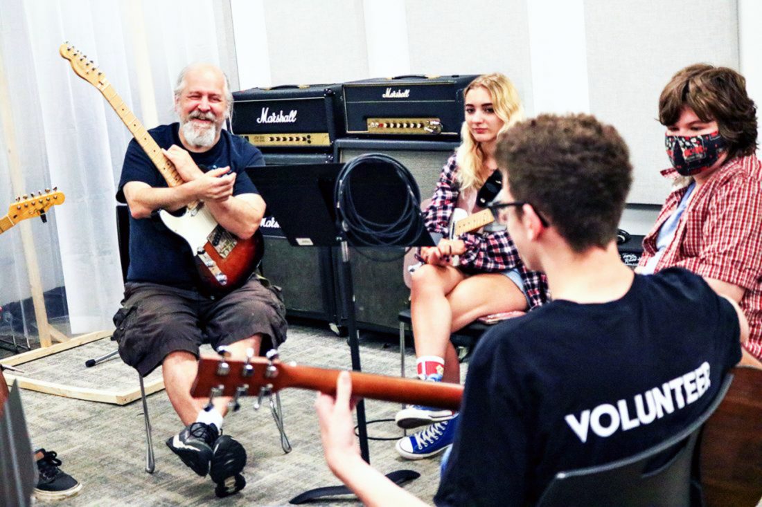 PHOTO PROVIDED Uptown Music Collective Founder & Executive Director Dave Brumbaugh speaks with students during a songwriting class.