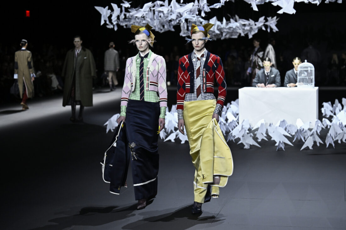 NEW YORK — Thom Browne loves building fantastical worlds for his fashion shows, and his fall/winter 2025 collection was no exception. The designer filled a darkened Manhattan theater space with 2,000 graceful white origami birds, many suspended in the air, as he closed out New York Fashion Week on Tuesday.