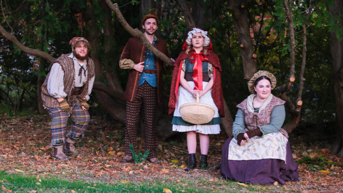 PHOTO PROVIDED Cast members of SRU Theatre’s production of “Into the Woods” include, from left, Jaden Mabin as Jack, Adam Fox as Baker, Peyton Houston as Red Riding Hood and McKenna Cover as Baker’s Wife.
