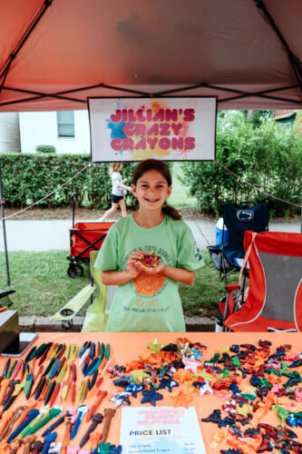Children and Youth Sidewalk Sale rules prohibit the sale of work made from kits, offensive and defensive weapons, the sale of services like face painting or hair braiding, the use of trademarked characters or products, like the Nittany Lion and Minecraft, in artist’s work and the sale of food. All work must be original. A complete listing of the rules can be found in the application. Please review the rules carefully as they may have changed since you last participated in the event.