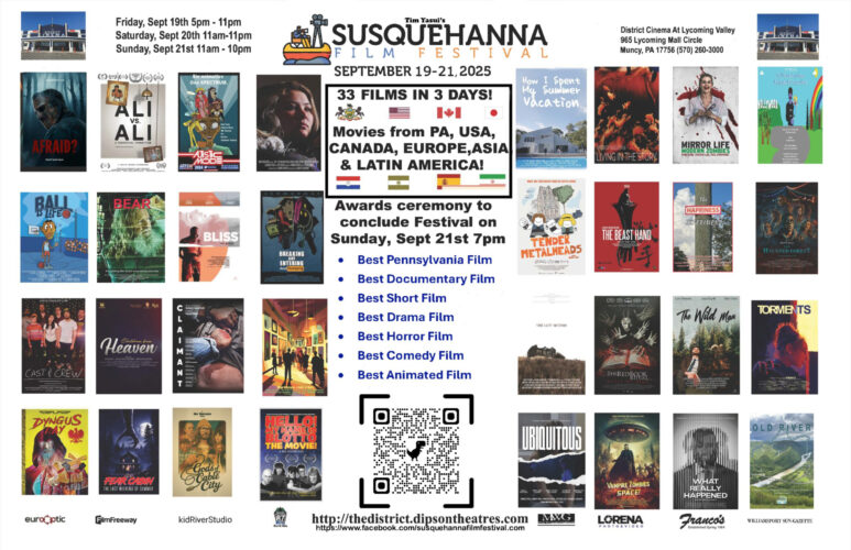 WILLIAMSPORT — The Susquehanna Film Festival is making available for the first time sneak previews of over 30 domestic and international films screening over three days on Sept. 19, 20 and 21, at the District Cinema.