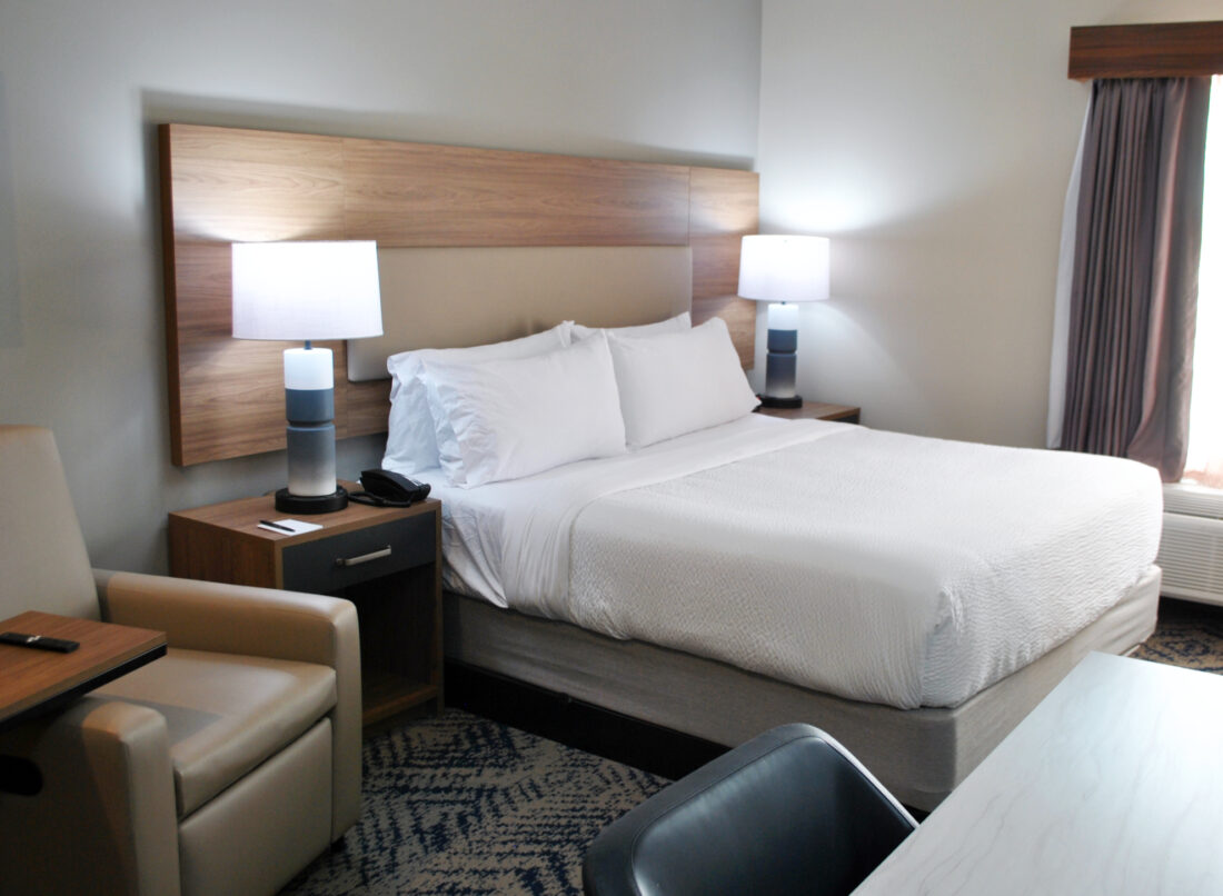 HUNTER SMITH/THE EXPRESS One of the rooms at the new dual-branded Avid and Candlewood Suites hotel in Bellefonte is pictured.