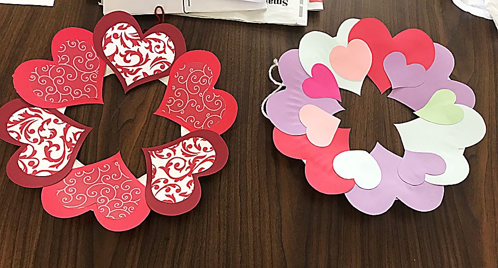 PHOTOS PROVIDED Shown are heart wreaths made by Lock Haven University recreation management students, together with residents from the Memory Care Unit at Haven Skilled Rehabilitation and Nursing in Lock Haven. The students planned and executed the activity with the residents.