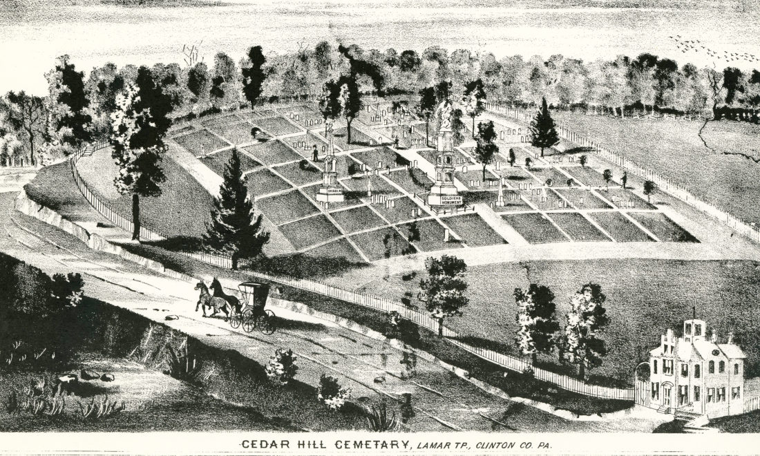 The Cedar Hill Cemetery Association was incorporated in 1870. Before that, the cemetery’s history booklet notes, the residents of lower Nittany Valley had no place of interment, except for the cemeteries in Lock Haven and Bald Eagle Valley. But all those cemeteries were crowded and not well managed, the booklet says. In fact, those places had no charter or title to protect the land from being bought out from under them.