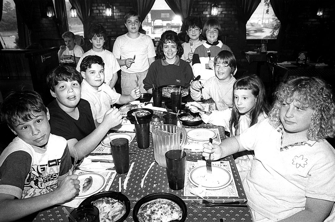 Mary Coploff, a former teacher at Mill Hall Elementary School, celebrates with her students after they passed all 16 levels of Snap-Math Facts. They are, standing from left, Heather Wolfe, Josh Thomas, Hope Hammersley and Tiffany Meckley. Seated, Rickie Worden, William Swortwood, Joseph Costulas, Coploff, Holly Hoffman, Ginger Titus and Britney Leupold.
