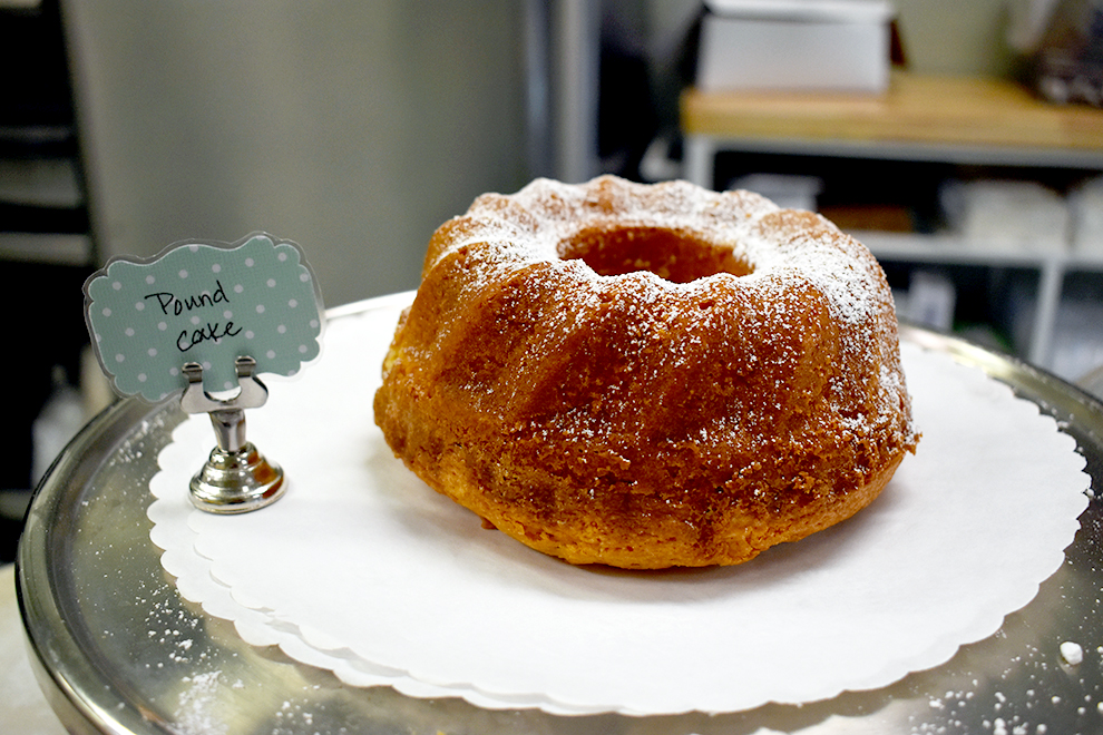LAURA JAMESON/THE EXPRESS A pound cake rests on a display tray on one of the counters at Simone’s Bakery.