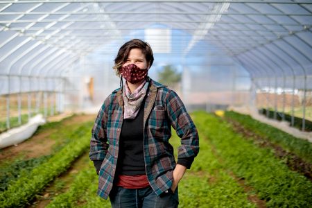 Jessi Lee Ross, 30, farm hand with Crooked Row Farm, poses for a photograph on the farm in Orefield on Friday, November 20, 2020.