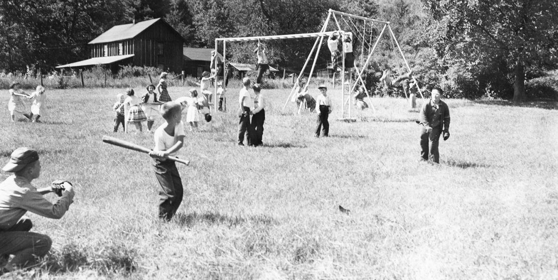 swing set, the playground offered lots for these youngsters to do. All the children would travel to the school by bus and carry their own lunches. We believe this photo was taken sometime in 1930s or 1940s.