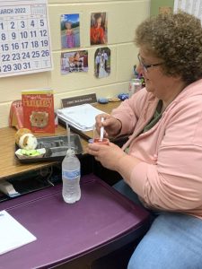 PHOTO PROVIDED Custodian Crystal Parks shares her lunch with Woodward’s stuffed hamster.