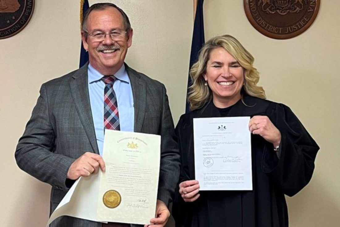 PHOTO PROVIDED Walter Eisenhauer being sworn into a seat on the Pennsylvania State Board of Medicine by Judge Denise Dieter.