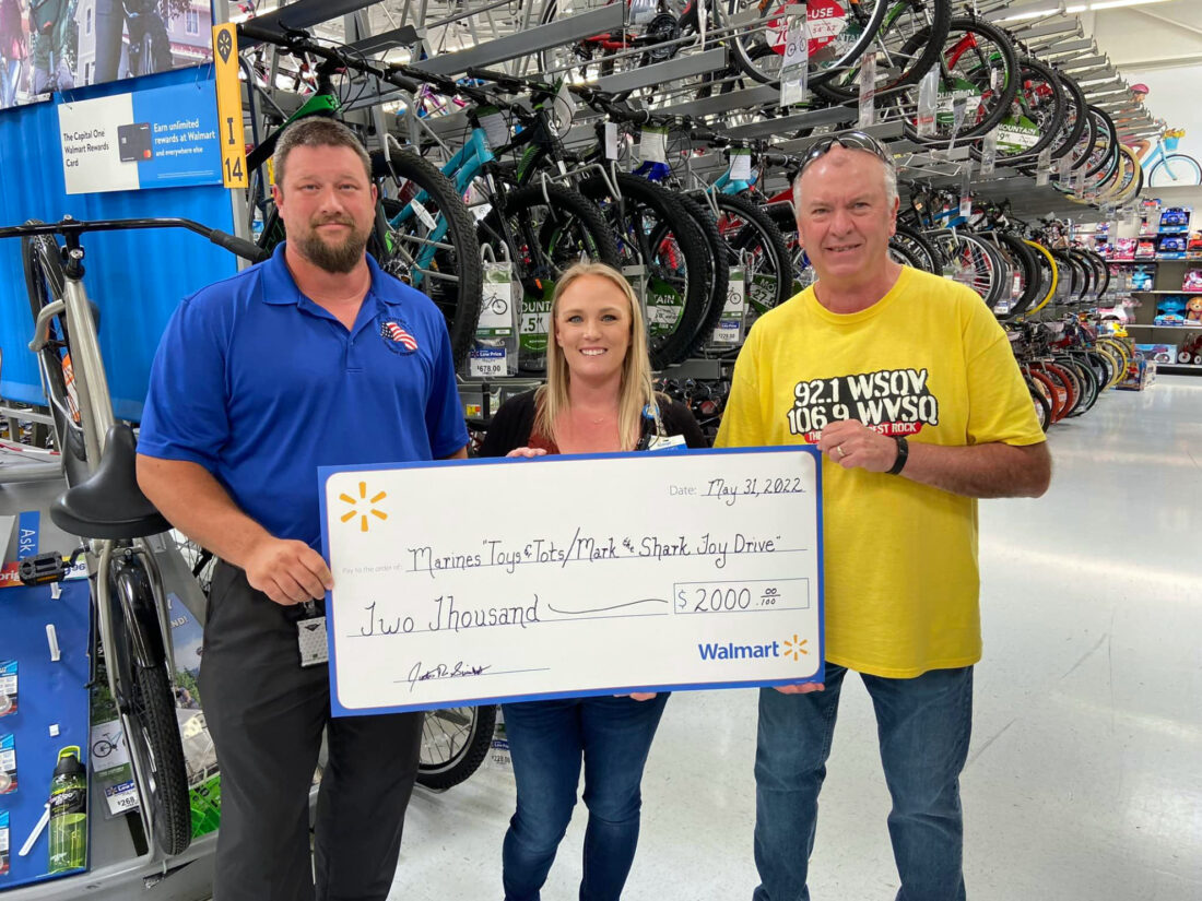 Once again Walmart in Mill Hall made a generous donation to the 29th Annual Mark The Shark Toy Drive. All donations help buy toys for children in Clinton County and the Keystone Central School District. Clinton County Toys For Tots works in partnership with Mark The Shark so that kids in the area have a great Christmas. Pictured, from left, are CC Toys For Tots Representative Jeff Croak, Walmart’s Janel Lavoie, and Mark “The Shark” Schlesinger.