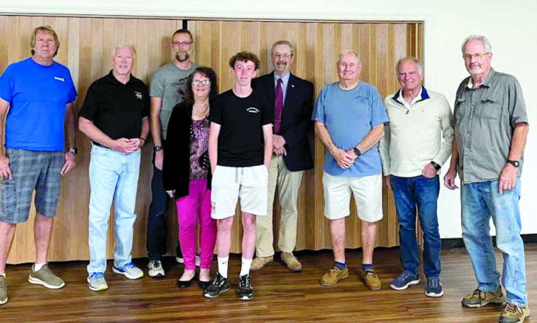 PHOTO PROVIDED Pictured, from left, are Piper Aviation Museum Directors Craig Kehrer, Ron Dremel, Josh Grimes, Cathy Redmond, Central Mountain student Pierce Long, Museum Directors Charlie Rosamilia, Cal Arter, Nils Mantzoros and Clyde Smith.