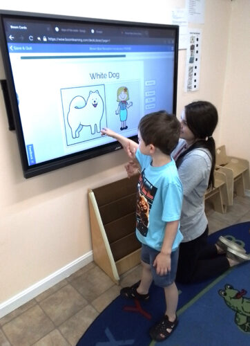 Lisa Bangson, IDP executive director, said the Smart Board is in the autistic support room and “a speech therapist uses it to promote communication. They are reading a book and incorporating the Smart Board to work on skills,” she explained.