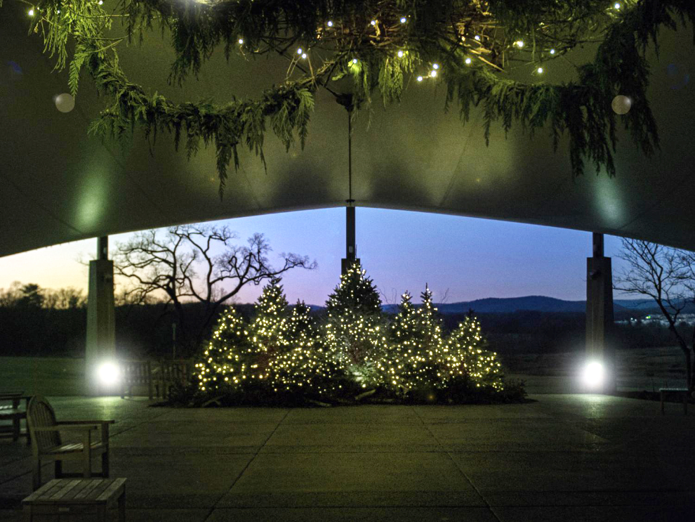 The Arboretum at Penn State’s light and landscape stay on for visitors to enjoy evening strolls until 9:30 p.m. and pre-dawn walks from 5:30 to 7:30 a.m. in the gardens through Jan. 18, 2026.