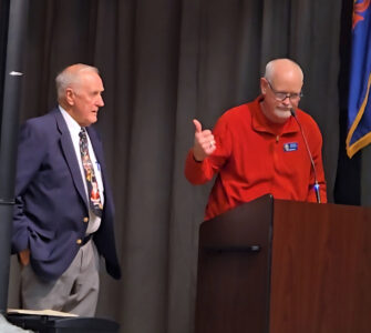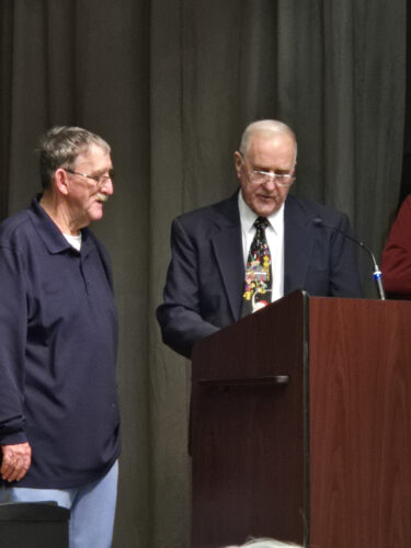 Pleasant Gap/Bellefonte Rotary member David Witherite presents Gene “Jumbo” Martz with the Community Service Award.