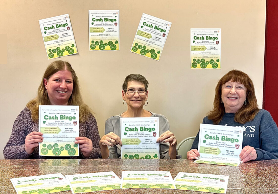 PHOTO PROVIDED Downtown Lock Haven Rotary has advance tickets available for a cash bingo Sunday, March 1st. From left are Club President Lisa Schropp, bingo chair Janine Bruno, and Wendy Doherty.