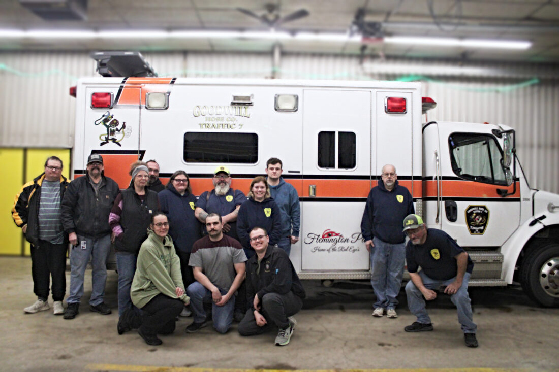 ASHTON PETERS/FOR THE EXPRESS Members of Flemington Goodwill Hose, community members and donors pose in front of the new traffic unit.