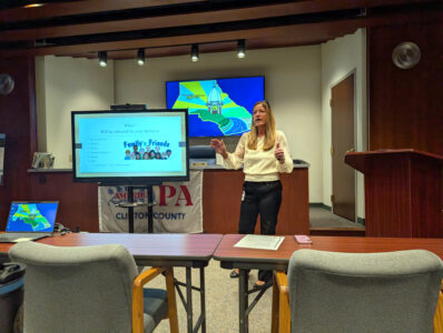 - PHOTO PROVIDED Clinton County Register and Recorder Jennifer Hoy, at right, speaks to members of Leadership Clinton County about her department’s role in county government.