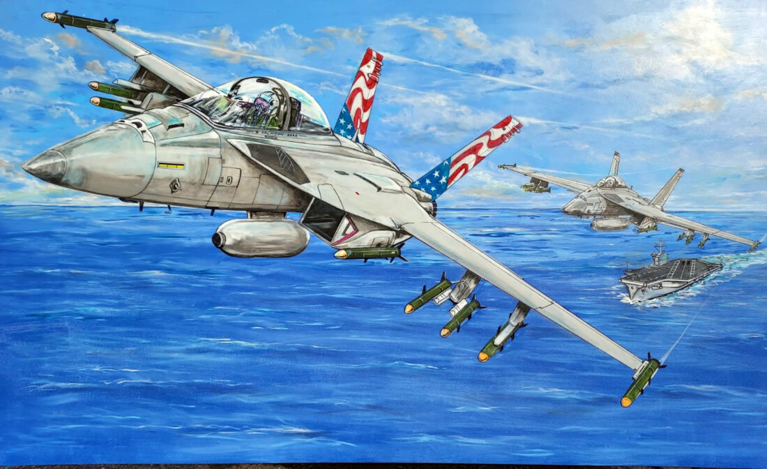The Sons of the American Legion Post 442 recently asked local member and veteran Robert Calhoun to paint a mural for their club. Calhoun, who often combines his tremendous artistic skills along with his hobby and love of studying military history, came up with a mural that now welcomes visitors to their Erie Avenue Remembrance Post. Depicted in the painting are two F/A-18 Super Hornets and CVN 78 USS Gerald R Ford. When asked for comment about his newest endeavor Calhoun said simply “Special thanks to all our veterans home and abroad. I hope everyone will come and join us at Post 442.”