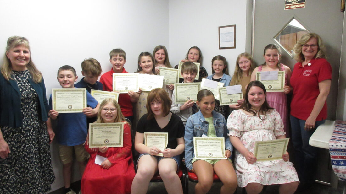 Students who received a $10 cash award for their essay entries were Enock Ream, Mason Wright, Katie Miller, Madilyn Stone, Madison Kleckner, Allison Jolloff, Jillian Bechdel, Savannah Murphy, Sophia Robinson, Matthew Maggs, Lily Kulakowski, Piper Hicks and Rylee Lininger.