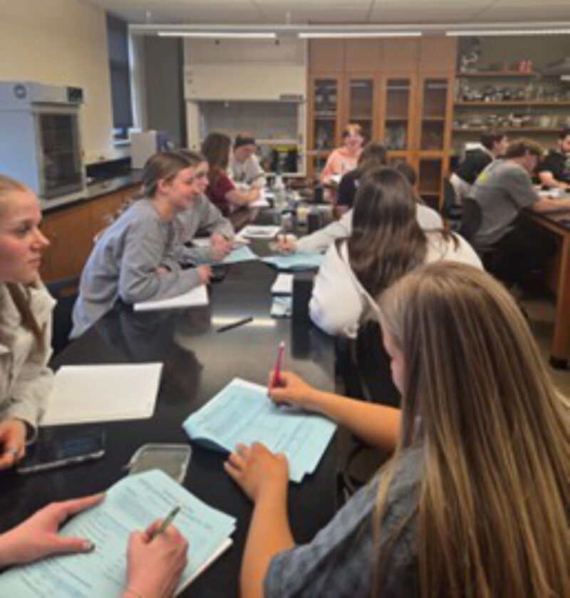 PHOTO PROVIDED Commonwealth University-Lock Haven students engaged in pre-lab discussion and worksheet analysis, preparing to understand real-time PCR concepts and experimental design.