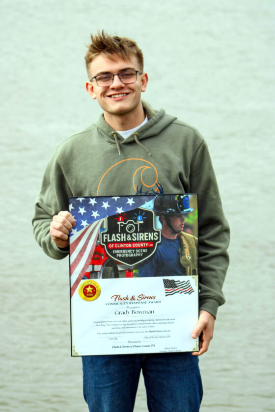 PHOTO PROVIDED Grady Bowman was one of two individuals honored for their quick response to a crash on Main Street in downtown Lock Haven on March 30.