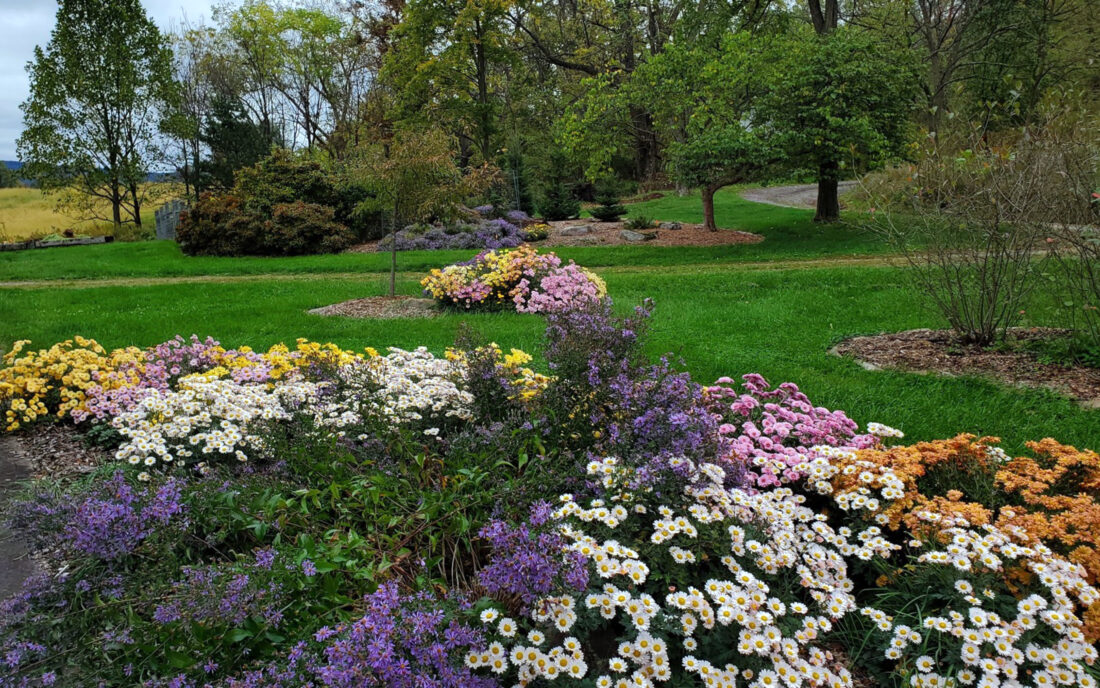 PHOTO BY DEBRA BURROWS Perennial chrysanthemums and asters return each year to add late-season color to this Clinton County landscape.
