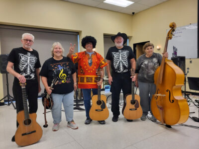 Together, the five members love to sing, play and invite others to share in the fun. Their repertoire includes over 600 songs spanning Gospel, Country, Appalachian, 1940s-50s classics, patriotic favorites, rock and roll from the 1960s to today, humorous tunes, children’s songs, traditional instrumentals, acapella pieces and even original works.
