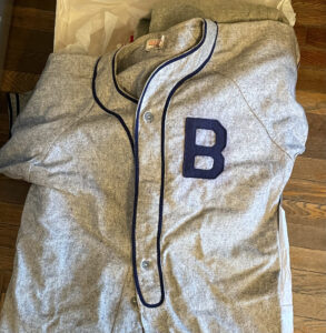 PHOTOS PROVIDED Several baseball uniforms were found in the attic of the Heisey House Museum, with no information about years, sponsoring organizations or team names attached. The “B” in some may stand for Blanchard. Anyone with information is asked to call 570-748-7254.