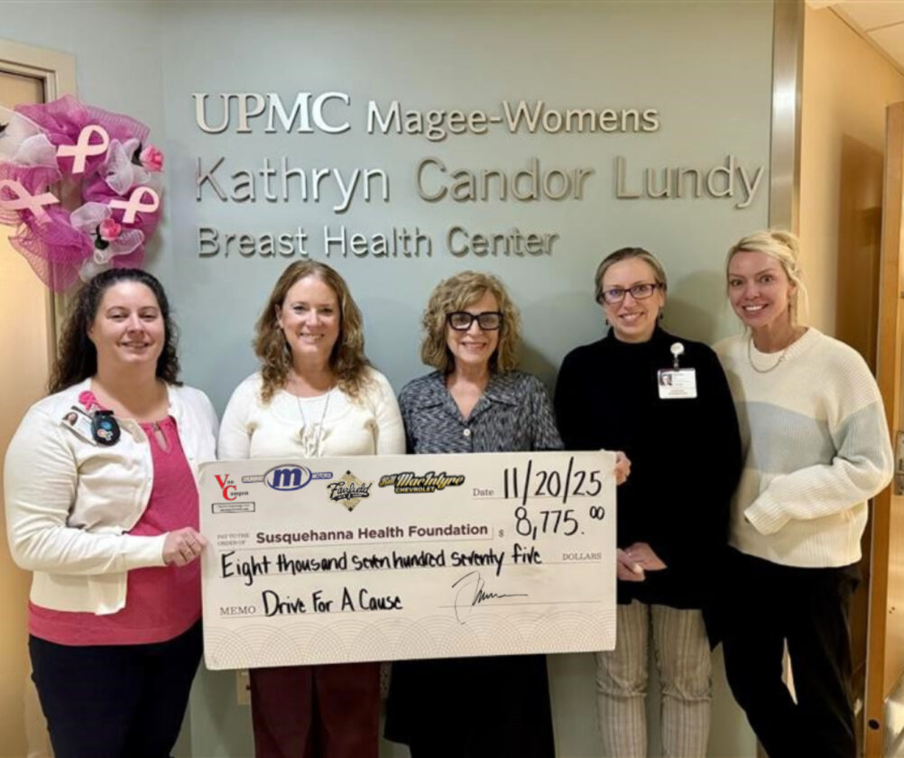 Participating dealerships contributed $25 for every vehicle sold to benefit the Kathryn Candor Lundy Breast Health Center, part of UPMC Magee-Womens in Williamsport. Thanks to the generosity of dealerships and sponsors, the campaign raised $8,775 to support breast cancer prevention, detection and treatment services in the community.