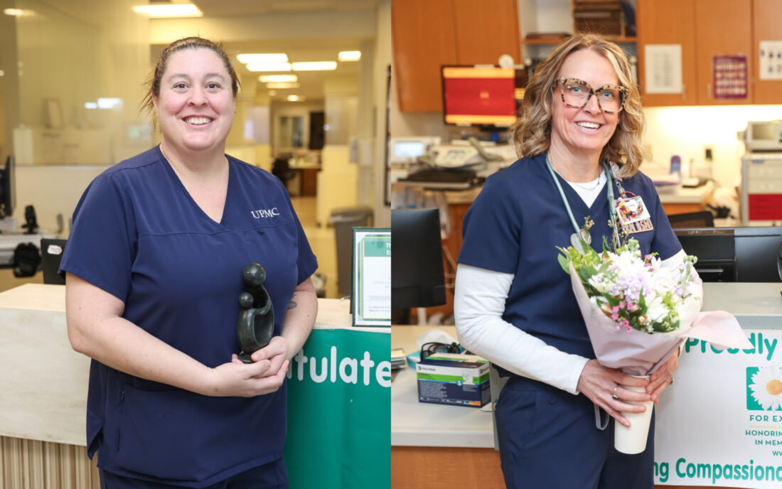 PHOTO PROVIDED DAISY winners Emily Shelley, BSN, UPMC Muncy, and Christy Cooney, BSN, UPMC Williamsport, are pictured with their awards.