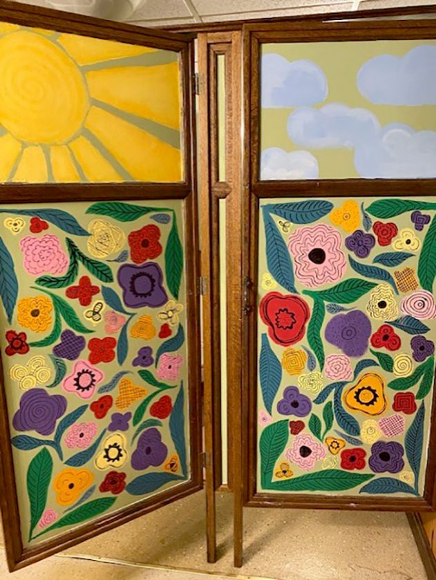 - PHOTO PROVIDED Bathroom doors were painted by Jim and Lori Maguire’s granddaughter, Olivia Hanna.