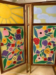 PHOTO PROVIDED Bathroom doors were painted by Jim and Lori Maguire’s granddaughter, Olivia Hanna.