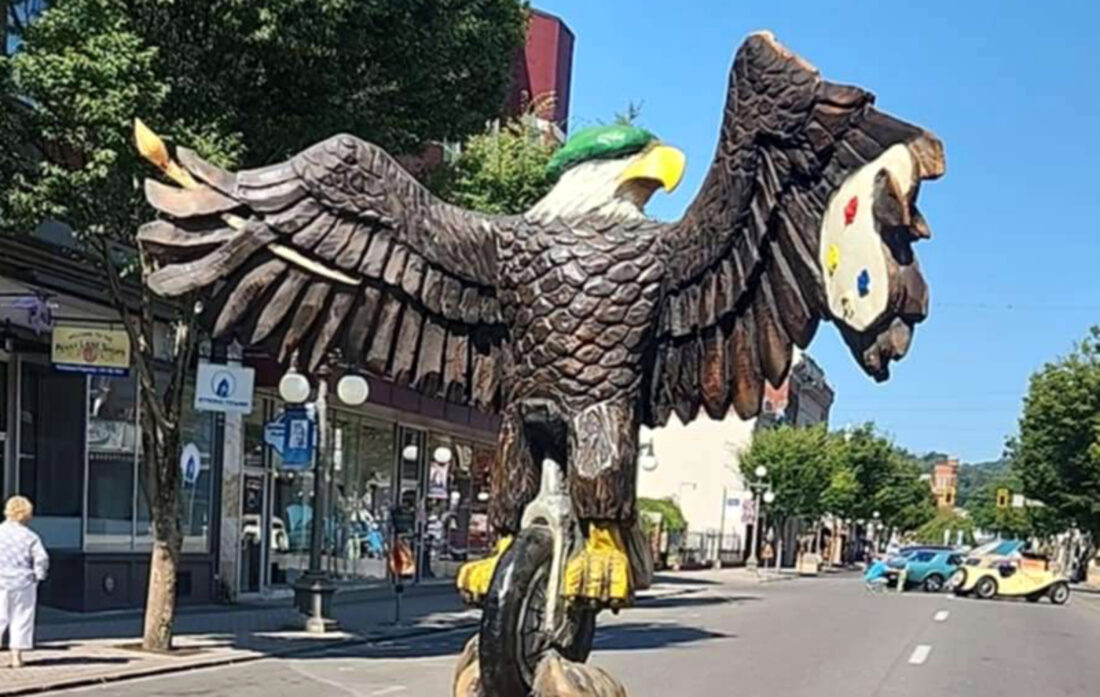 - PHOTO PROVIDED One of the bald eagles, this one designed by City Planner Abbey Roberts, is pictured during an event on Main Street. The bald eagle can be found in the Church Street Parking Lot area.