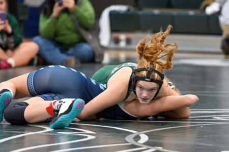 - PHOTO PROVIDED SVRCS freshman Keelie Wetzel wrestles an opponent.