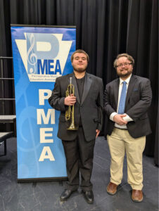 - PHOTO PROVIDED Sugar Valley Rural Charter School band member Noah Smith and Band Director Joseph Mauck are pictured at a PMEA event.