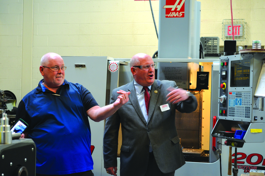 SARAH PAEZ/THE EXPRESS Precision machining instructor Shan Packer and U.S. Rep. Glenn “GT” Thompson are seen.