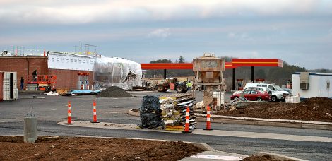 CHRIS MORELLI/THE EXPRESS The construction of a Rutter’s convenience store along the Benner Pike in Bellefonte is picking up steam. The new store will be sandwiched between a pair of Sheetz stores in Bellefonte and State College and will likely provide some much-needed competition in the Centre Region.