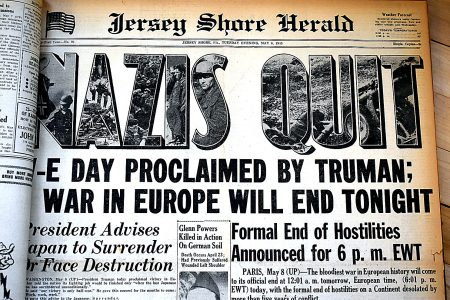 - EXPRESS ARCHIVE May 8, 1945 of the Jersey Shore Herald — Headlines from the end of World War II in Europe. Today is the 75th anniversary of Victory in Europe Day, celebrating the surrender of Nazi Germany.