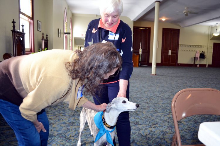 The group celebrity, a therapy dog named Magnolia, attended the most recent meeting with her owner Pam Blesh. Merci Isle Magnolia is an 11-year-old Whippet and retired show dog.