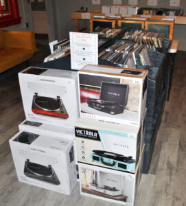 CHRIS MORELLI/THE EXPRESS Record players are ready for sale at Fez Records, located at 2042 Axemann Road in Bellefonte.